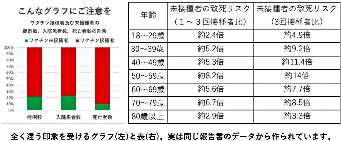 「ワクチンは危険だ」と主張する人の示すデータは、考慮されるべき要素・条件(接種・未接種の人数比や年齢層等)を意図的に欠落させ、誤解させるように作られていることが多々あります。
