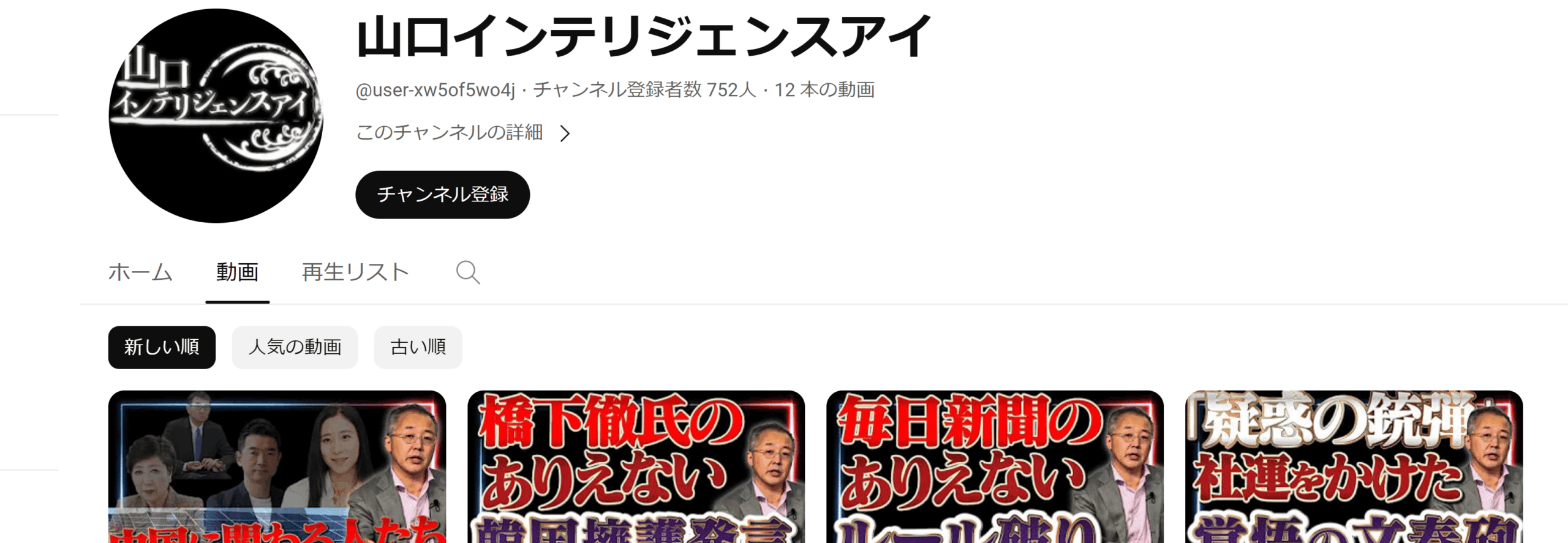 山口は自身のYouTubeチャンネル名を『山口インテリジェンスアイ』としている。▼▼