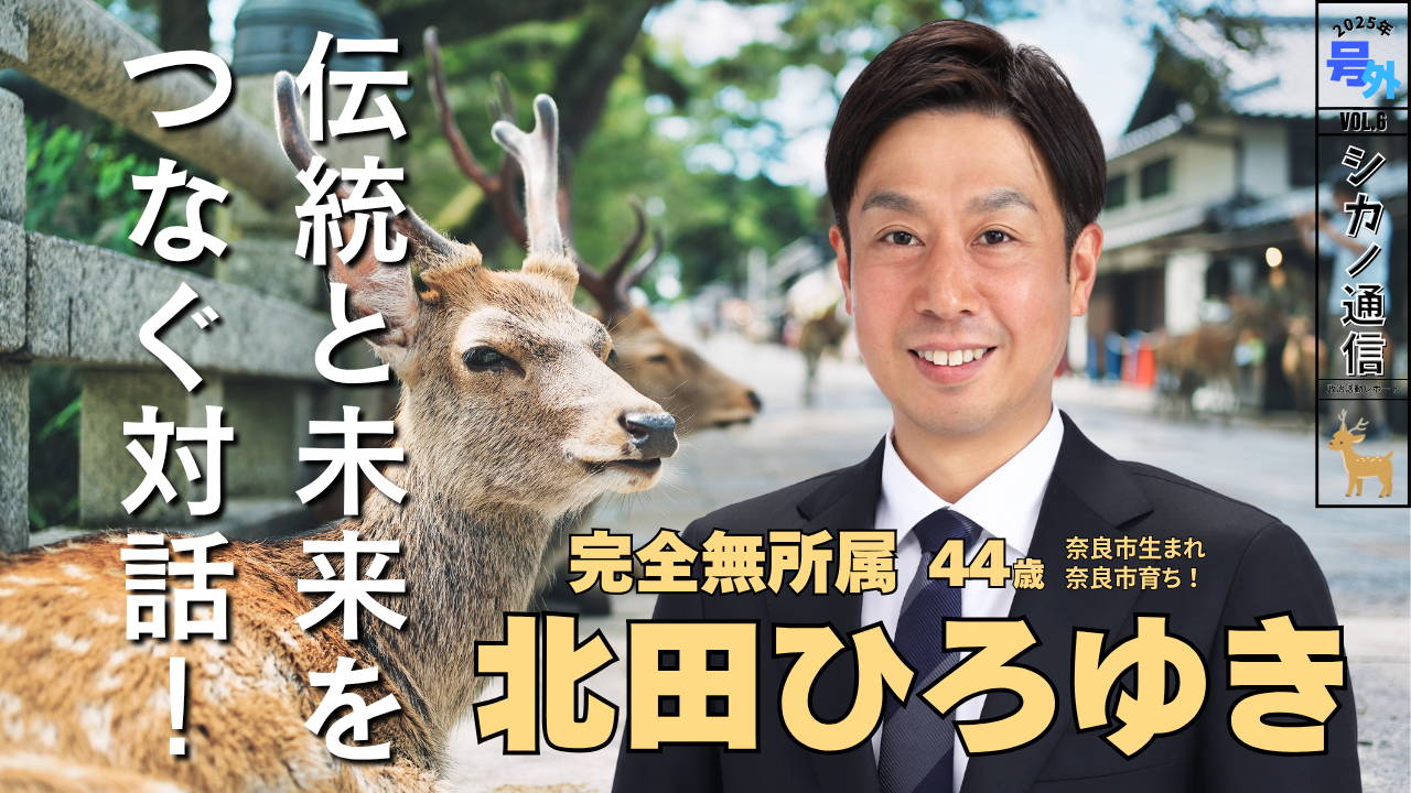 完全無所属・奈良市政対策委員 北田ひろゆきの公式ホームページです。プロフィール、最新NEWS、5つの政策提言、各種SNS、献金のお願い、「しがらみない無党派として私たちの声を市政に届けるために新しい風を吹かせます!奈良公園の鹿と古都を守れ!...