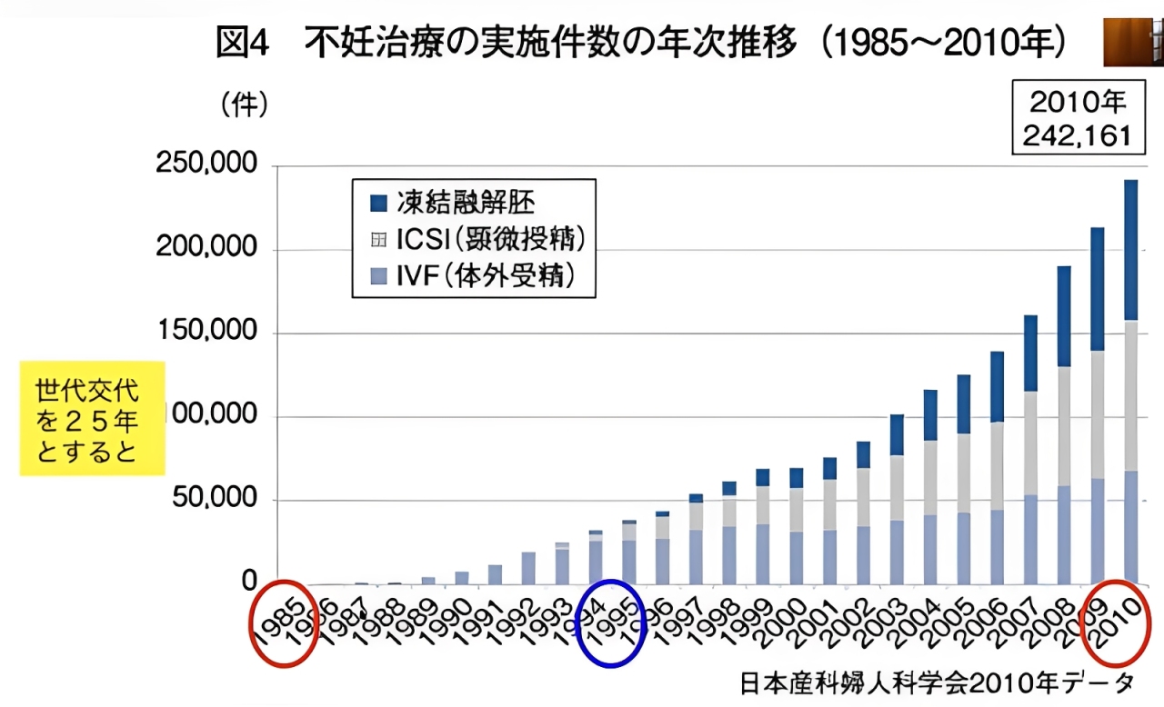これらの不妊治療が普及して以降、統計として報告される症例数は主に1985年以降のデータに基づいている。言い換えれば、日本ではおよそ50年前までは現在のような不妊治療が一般的ではなかったというだけの話である。