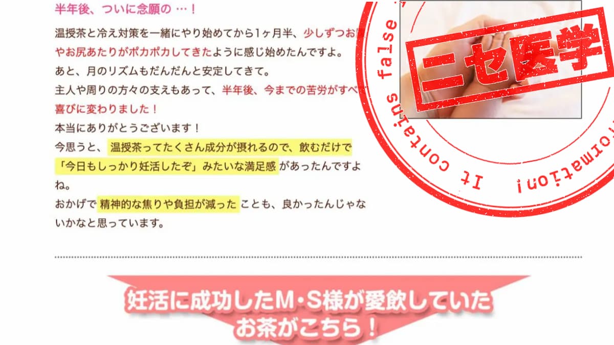 それはどういうことかと言うと、あえてこのように怪しく馬鹿っぽい主張をすることが、そのサービスを求める客、つまり騙しやすい客を選定するために都合が良いからだ。リテラシーが欠如していて他人を信じやすい人はクレームを言ってくることが少ない。だから、顧客の妊活の結果がどうなろうと妊活サービス提供者には問題無い。うまく妊娠すれば大成功だと顧客に喜んでもらえるし、妊娠に至らなくともクレームには繋がりにくいように仕向けられているのだ。