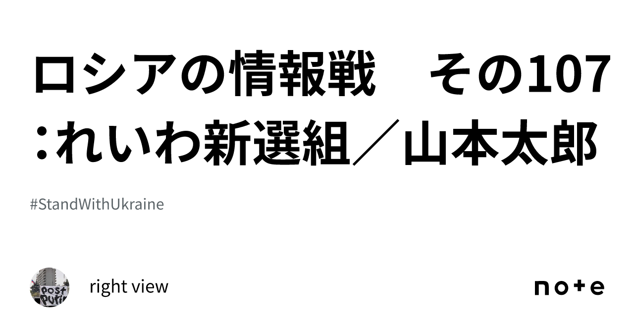 れいわ新選組の山本太郎は2022年、ウクライナに再侵攻したロシアをれいわ党首として擁護に走っている。